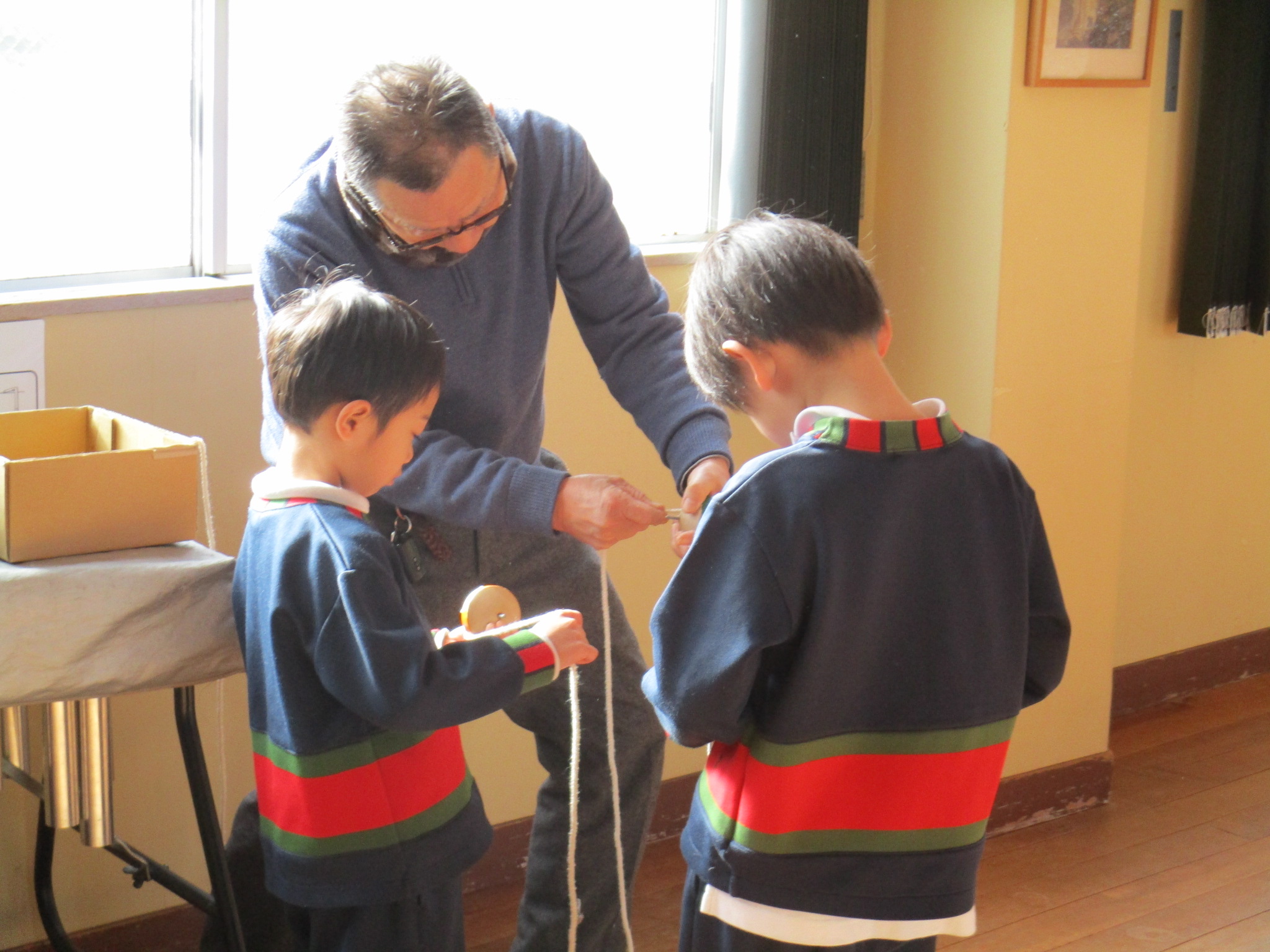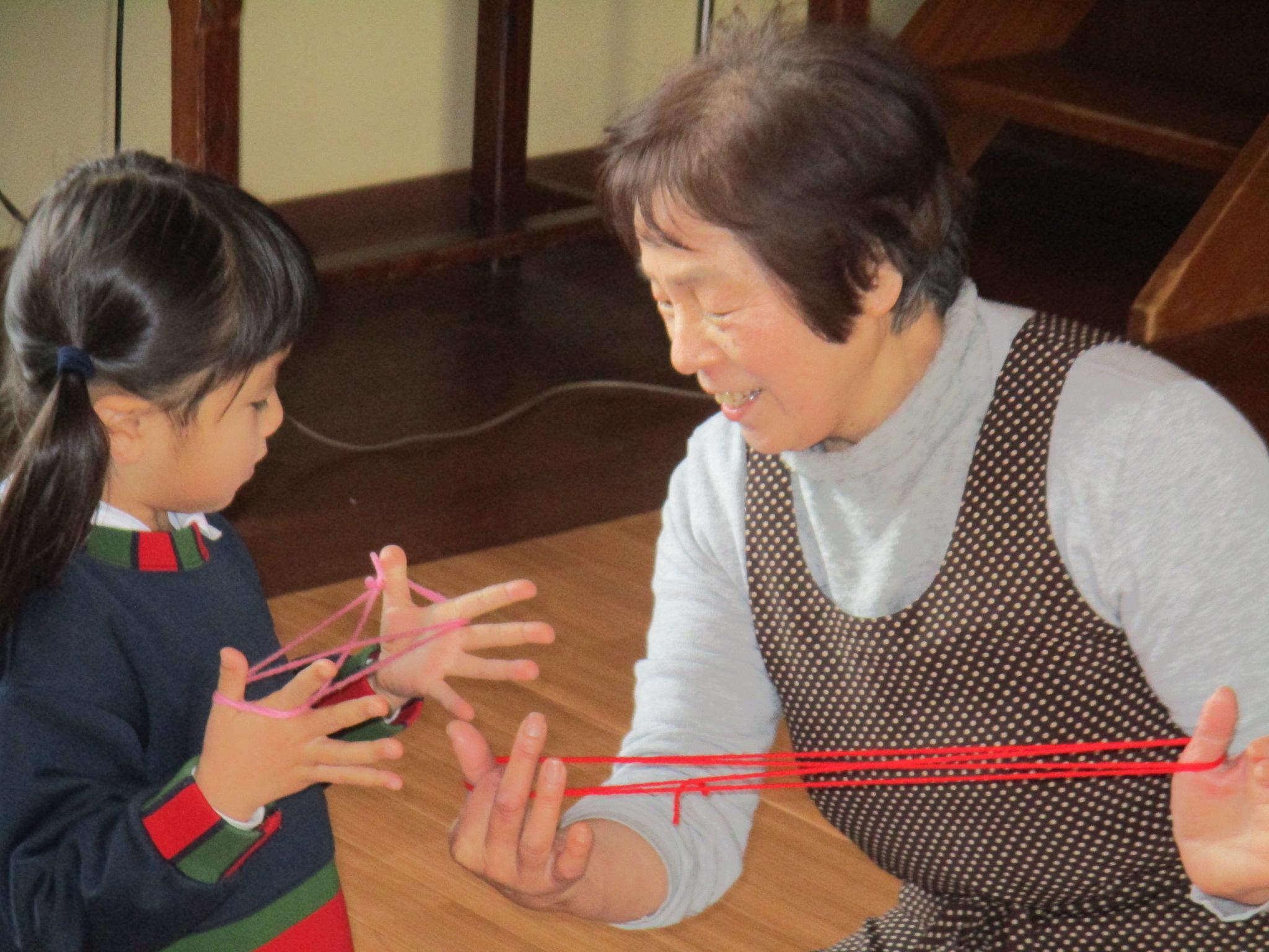 2018/01/31 : 幼稚園で、昔遊びで交流 シオン幼稚園の園児さんと、コマ回し、あやとり、おじゃみ等の昔遊びで交流しました。 |